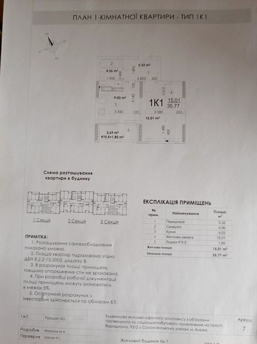 Подільський; Продам 1-но кімнатну квартиру ЖК"Відрада", пр-т Відрадненський 93/2; Продам 1 кімнатну квартиру, 35,7/15,1/9,03, розташовану у будинку 7, секція 3, поверх 6/ 9-ти поверхового будинку, південне розташування квартири.