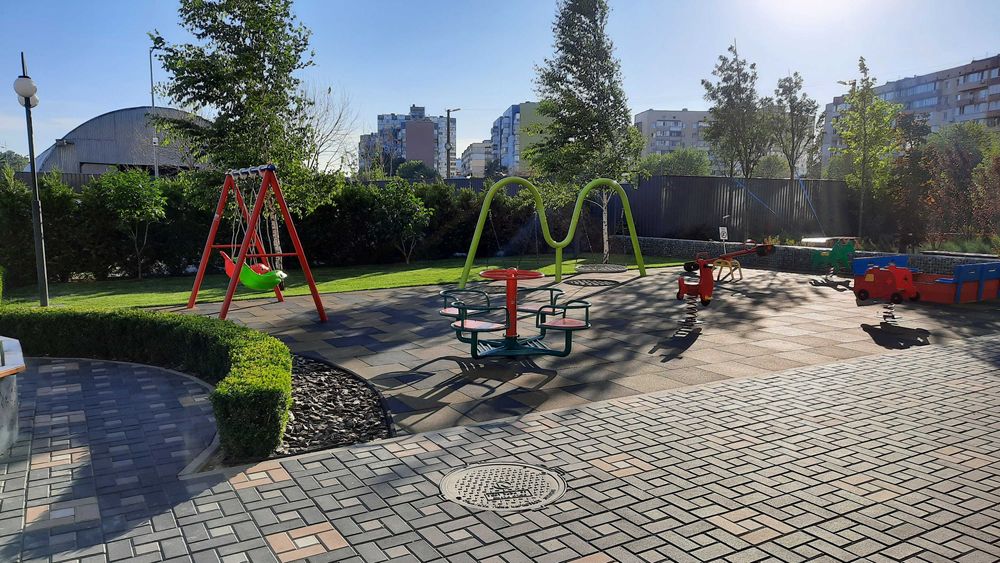 Магазин, салон краси, кав'ярня, банкомат, поштомат НП та інше прямо на території. У дворі спортмайданчик, гостьова стоянка.