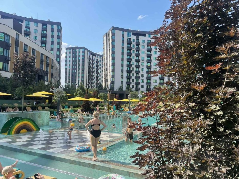 Софіївська Борщагівка, У- Квартал Затишний . Власник.; Однокімнатні квартира в закритому комплексі з цілодобово охороною,зелена велика територія, басейн,баскетбольне,футбольне поле,теніс,дитячі майданчики. Розташован на Софіівський Борщагівка, проспект Героїв Небесної Сотні. Найближча станці метро Аккадеммістечко.На території є державний дитячий садок.В квартирі зроблений новий ремонт,теплі поли,бойлер,плита,духова шафа,холодильник,два смарт ТВ.Дві великі шафи для зберігання речей.Можливо з невеликими домашніми улюбленцями. Ціна 18000.