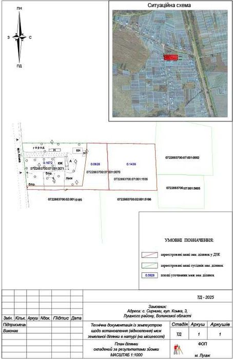 06******54; кадастровий номер: 0722883700:07:001:0070, 0722883700:07:001:1935