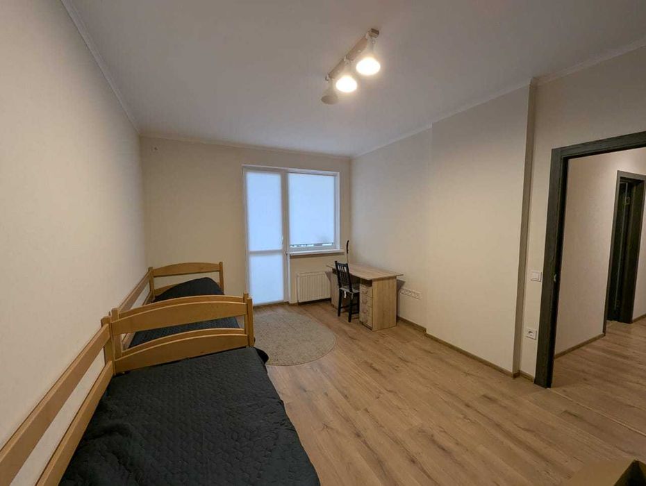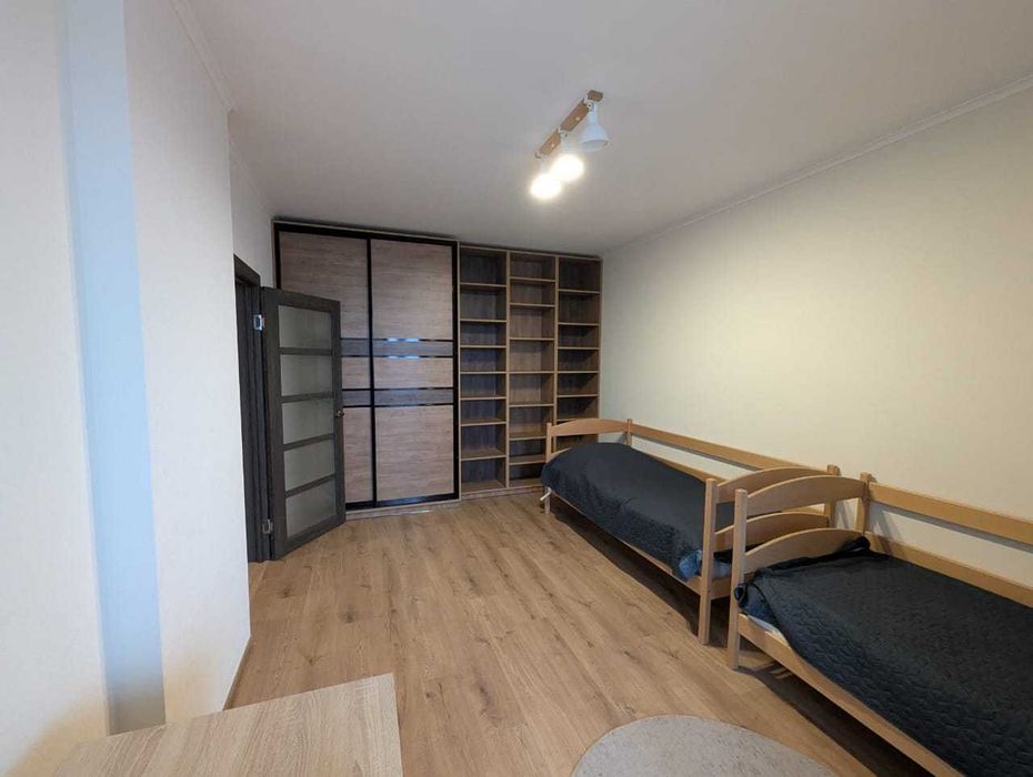 – повний комплект якісних меблів (широке двоспальне ліжко, два окремі ліжка, великий обідній стіл, стіл для навчання/роботи, шафа-купе в коридорі, шафа-купе і шафа в кімнаті, комод, чудові матраси);