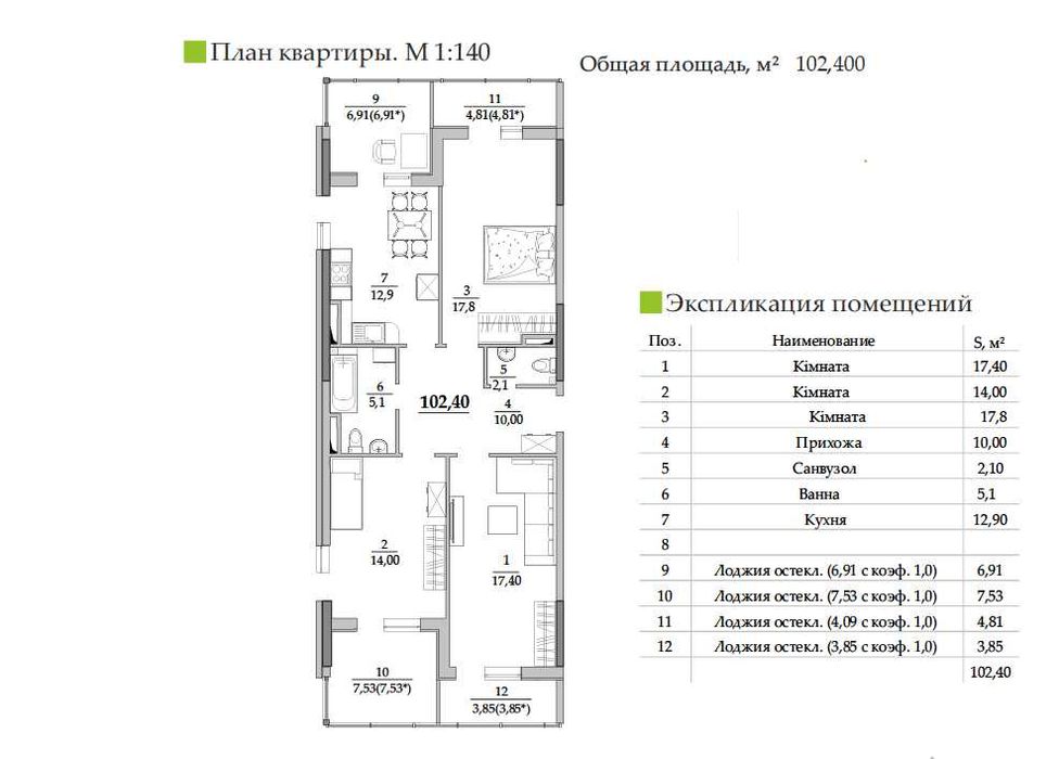 — 102,4 м² продуманого простору: кухня-вітальня та 3 спальні — ідеально для сім’ї або тих, хто цінує комфорт.