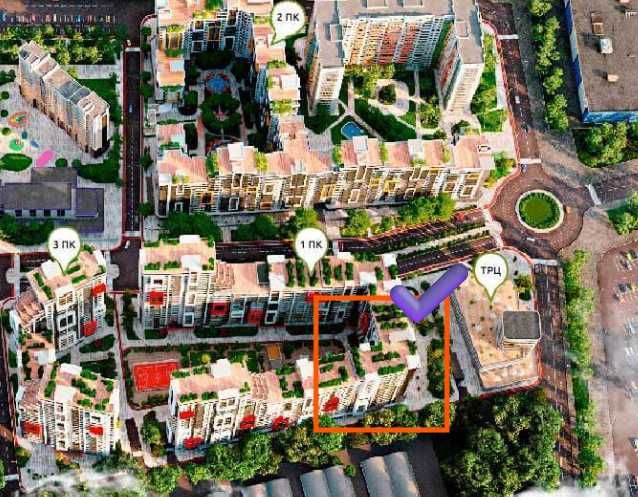 — Дом с красивым благоустройством, детскими площадками и парковкой.