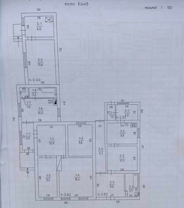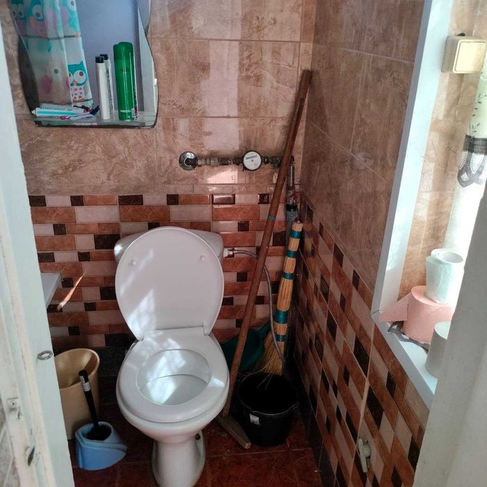 Вхід №1: площа – 64,6 кв.м, коридор, кухня, ванна кімната, туалет, має 4 житлові кімнати;