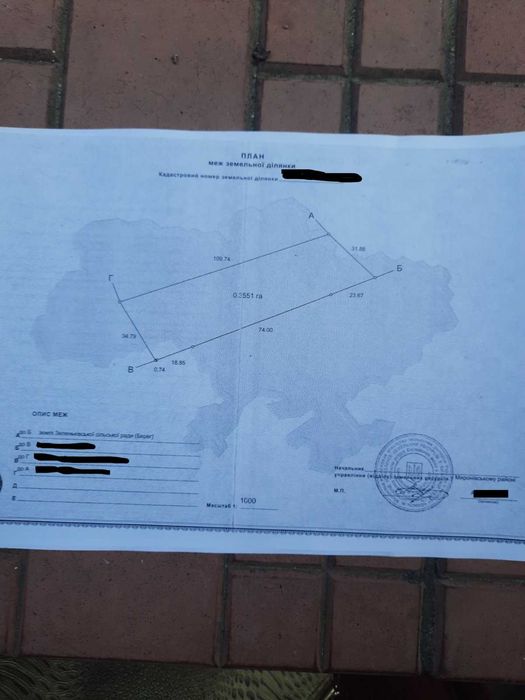 Суміжна ділянка — 0,3551 га (для ведення особистого селянського господарства)