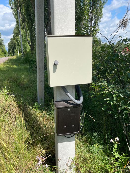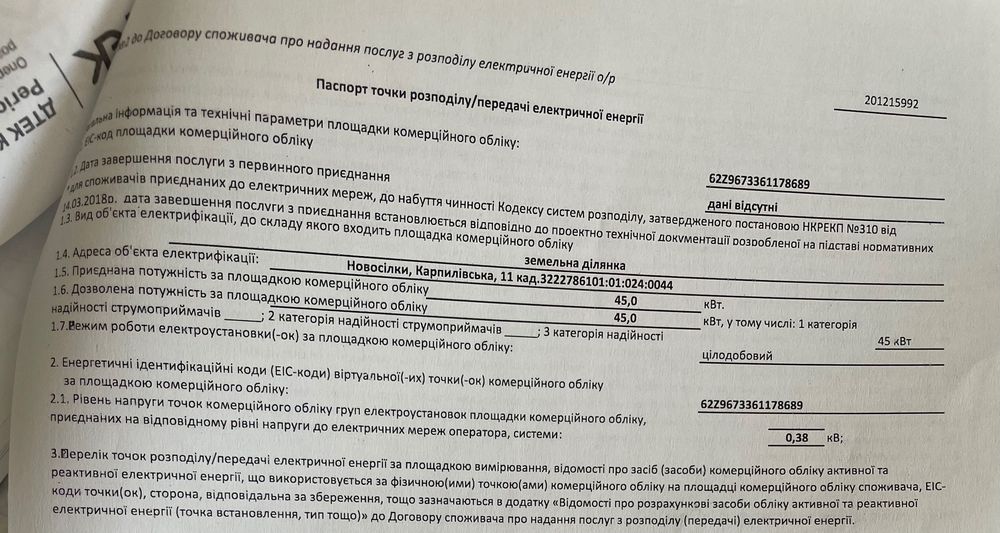 Із комунікацій до ділянки підведена електрика, 45 кВт, 3 фази, лічильник день/ніч, зроблена розетка тому можна вже користуватися, також біля дороги проходять газові комунікації тому при бажанні можна підключити і газ, вода знаходиться десь близько 40 метрів, у сусідів скважина 42 метри.
