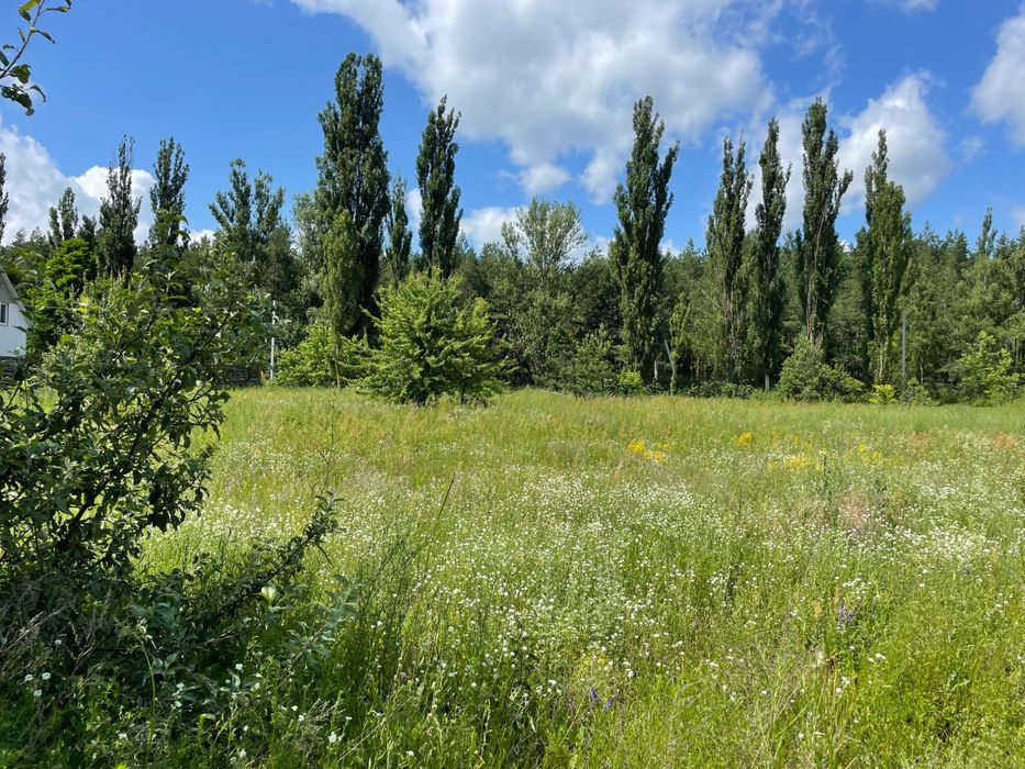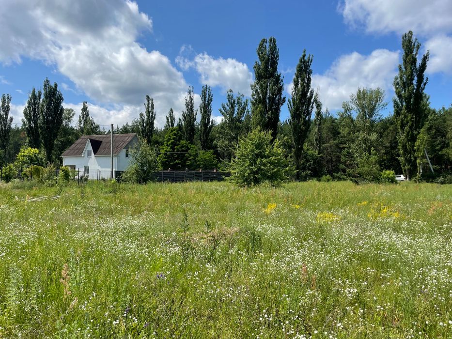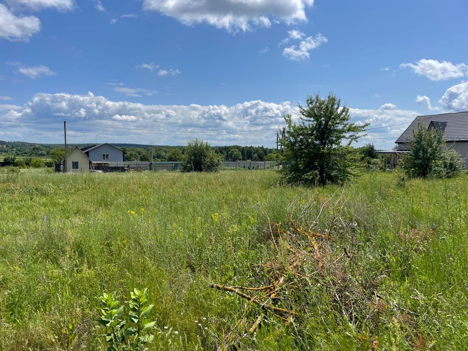 Ділянка фасадна, має одразу вихід до асфальтної дороги, на ділянці висаджені сосни, ростуть також дикі яблуні, слід зазначити що з ділянки видніється чудовий вид в сторону річки Ірпінь, через дорогу знаходиться змішаний ліс, також 800 метрів до озера в якому можна ловити рибу а бо просто відпочивати, розташоване в селі Мостище. Природа фантастична, ліс надає свіже повітря, дуже добре місце для побудови будинку.