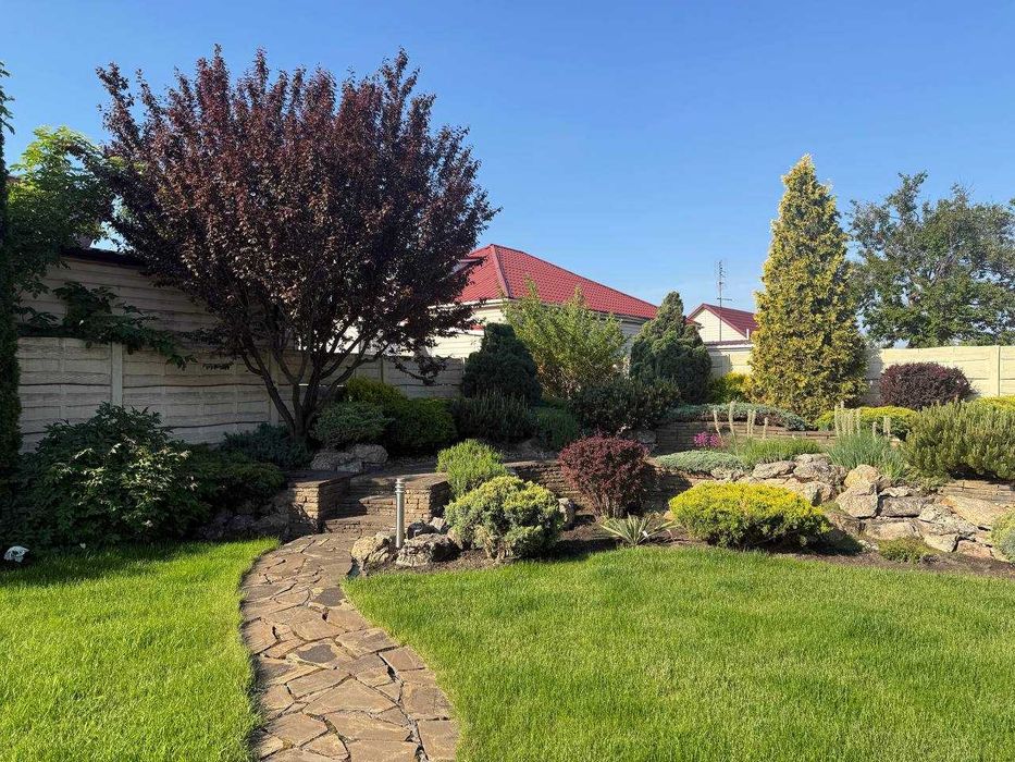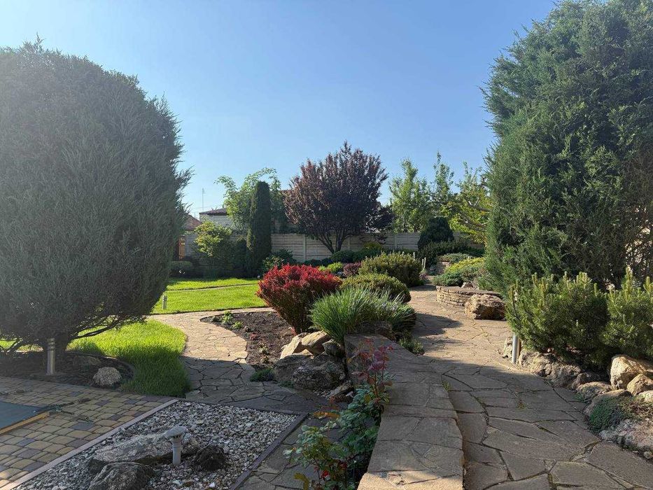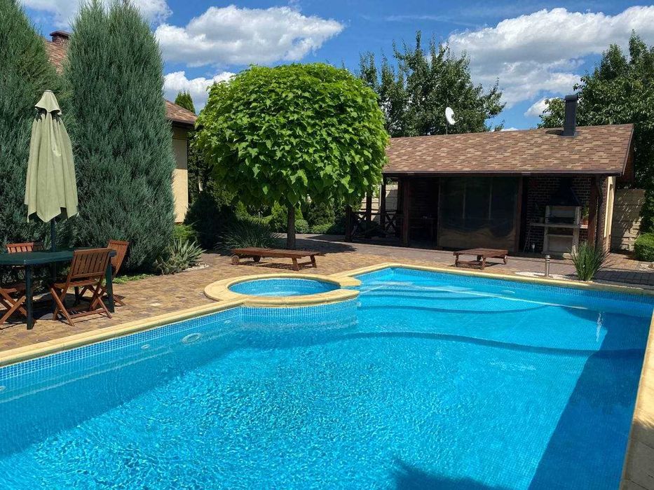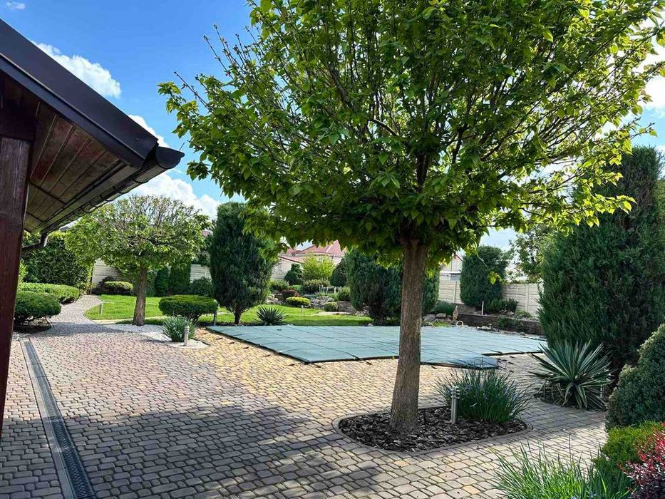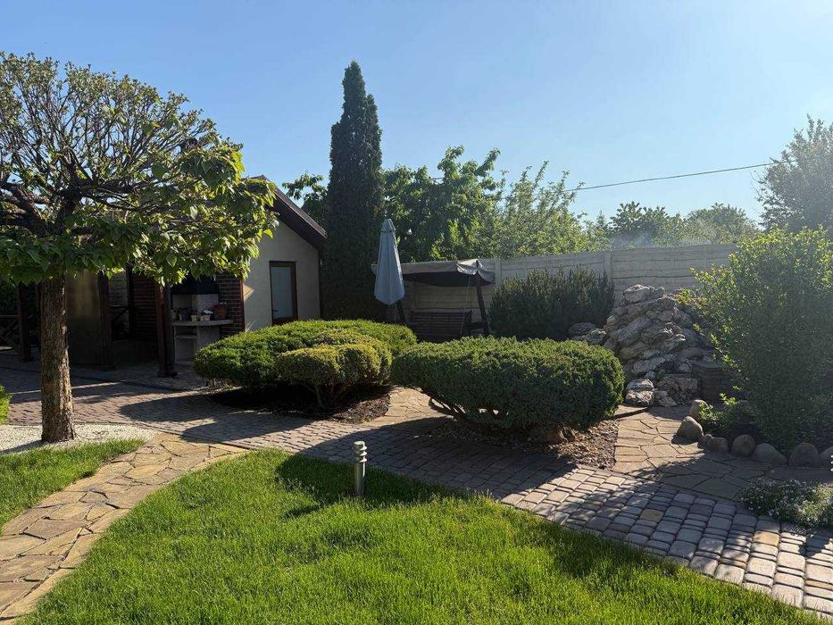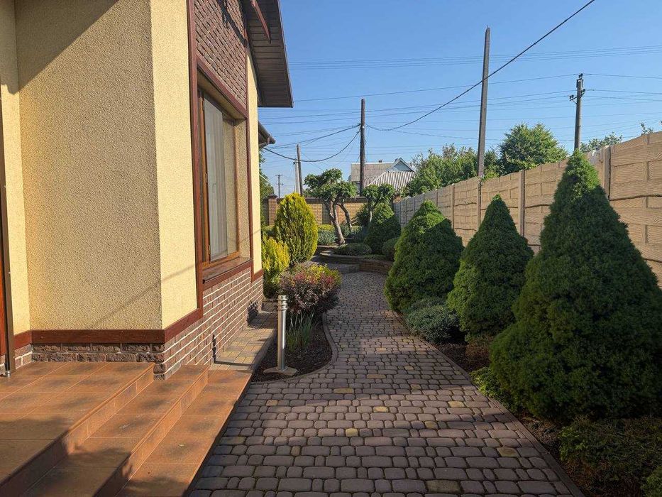 Сама ділянка огороджена добротним сучасним парканом і наповнена мальовничими елементами ландшафтного дизайну, в якому ідеально розташувалася літня зона відпочинку, завдяки якій ви будете почуватися як на пікніку, не виходячи з двору. Найголовнішою родзинкою даної пропозиції є звичайно ж басейн з джакузі та гідромасажем! У літні дні просто рятуватиме вас і Ваших діток від спеки! Доглянута земельна ділянка з ландшафтним дизайном потопає в буянні зелені та обладнана автоматичним поливом. Двір викладено якісною плиткою.Додаткові фото будинку на запит.