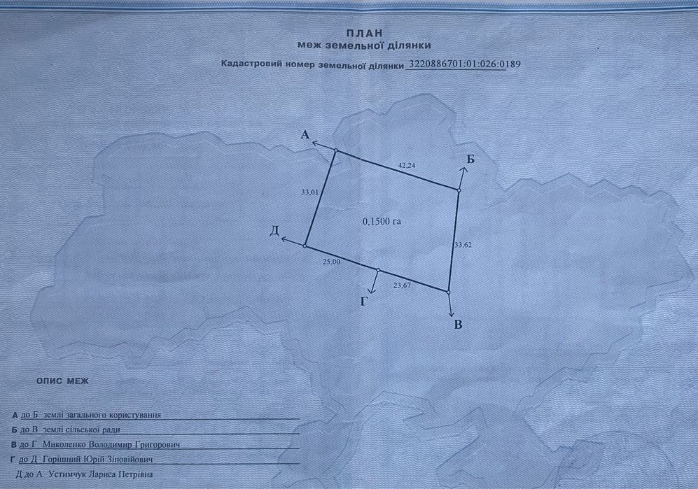 | Земельна ділянка: |