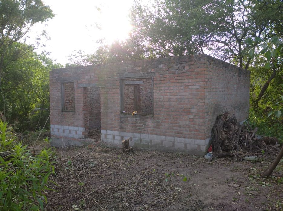 Дача на Булатецькому ставку без даху, приватизована; Гарне, тихе місце, будинок на блоках з гаражем дві кімнати, велике підвальне приміщення + ворота без рами, 3 блоки і плита, стовб електрика поряд, вода, рівна приватизована ділянка 6 соток з фруктовими деревами, до води метрів 100