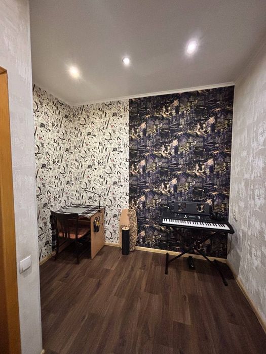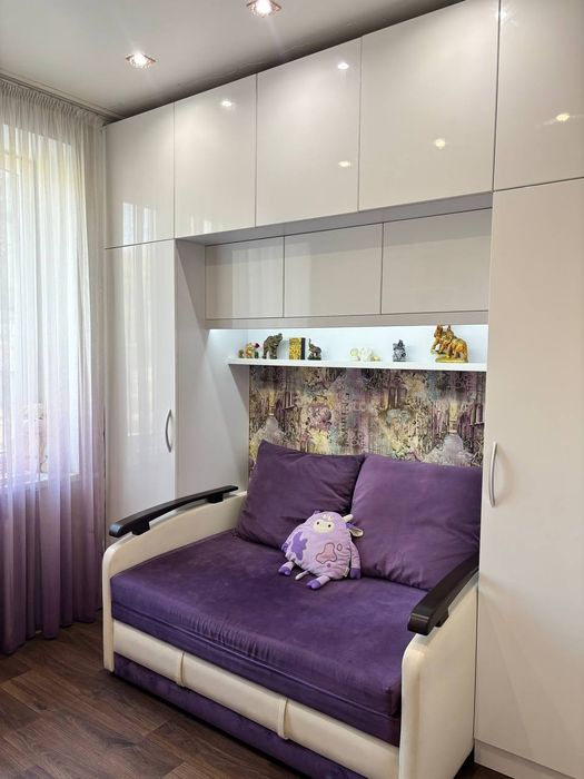 Квартира в гарному житловому стані: дві окремі кімнати, велика зала. Дитяча кімната розділена на дві частини: спальня та робоча зона.