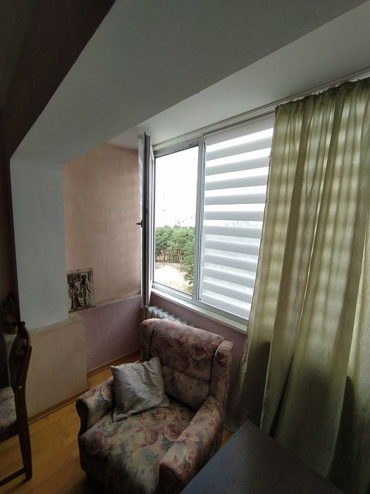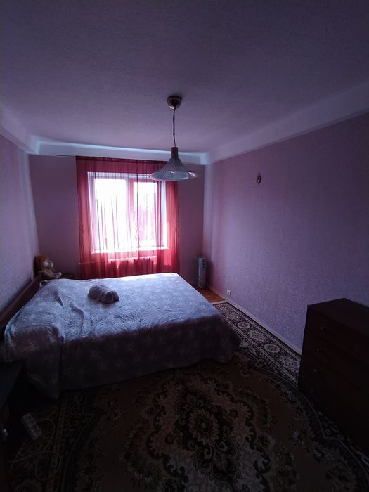 На підлозі паркет, розкладний диван ,зручна кровать. металопластикові склопакети.