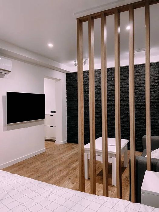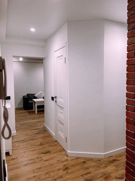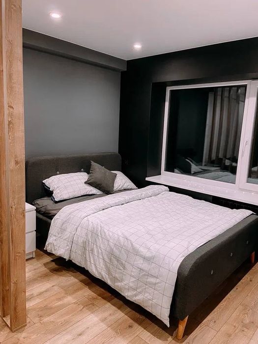 Затишна квартира, в квартирі є все необхідне для життя, двоспальне ліжко, розкладний диван, телевізор, окреме робоче місце, повністю укомплектовані кухня(духова шафа, газова плита, мікрохвильова піч) кондиціонер, велика шафа, тепла підлога, робот пилосос, тепла підлога