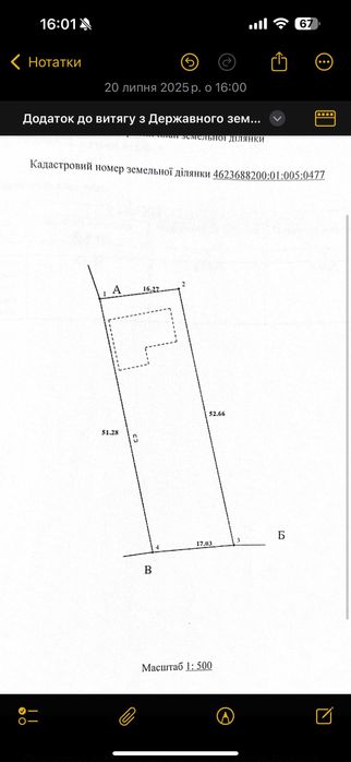 Кадастровий номер: 4623688200:01:005:0477