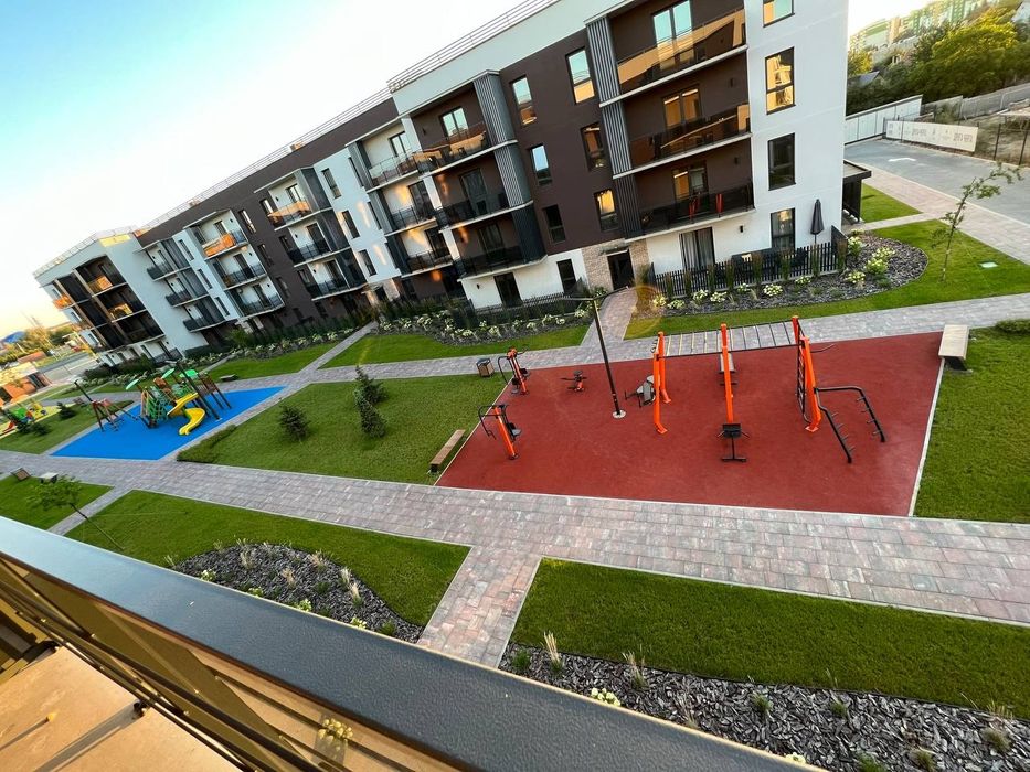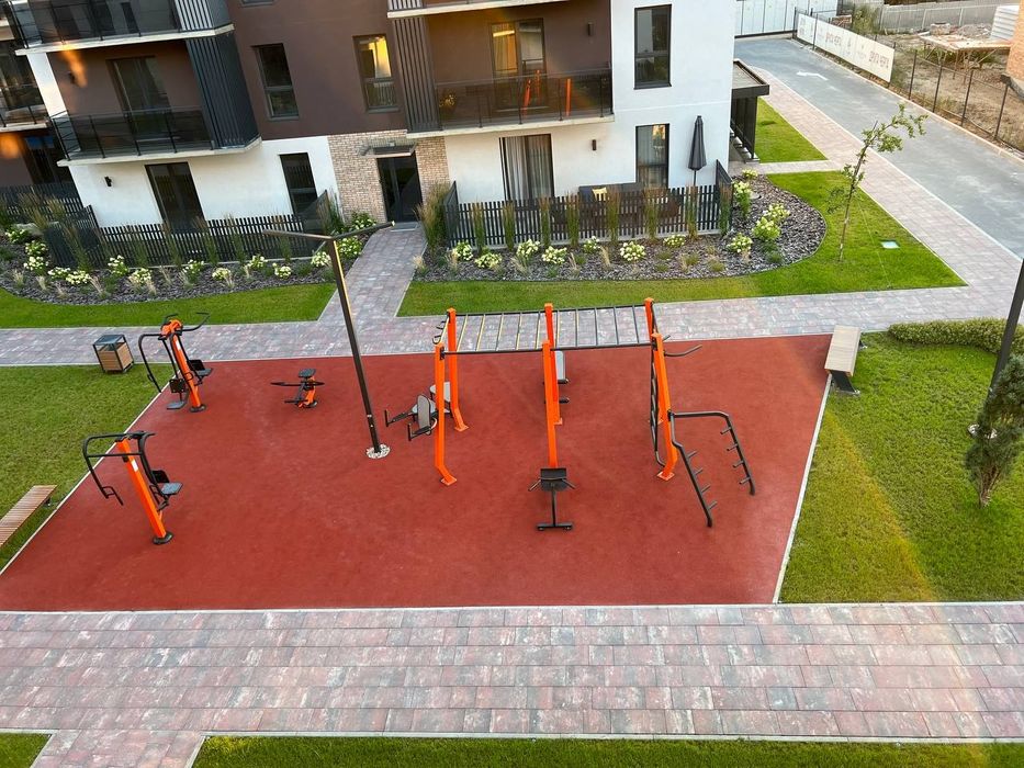 Великий дитячий майданчик та зона для заняття спортом.