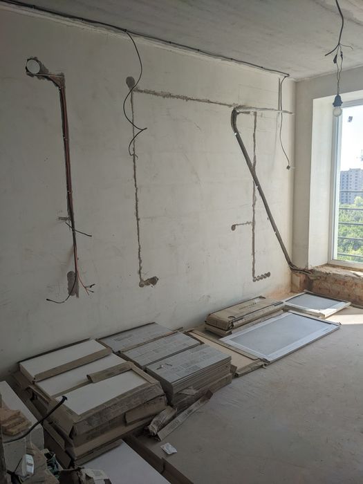 Закуплено батареї, раковини, унітази, крани, плитка в санвузли та кухню, вінілове покриття на підлогу.