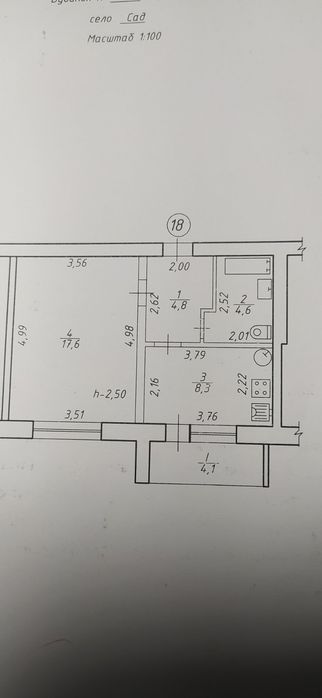 Просторна та затишна однокімнатна квартира площею 37, 3 кв.м у центрі с. Сад.