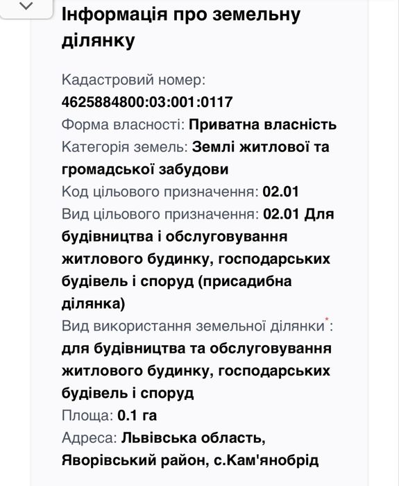 | Земельна ділянка: |