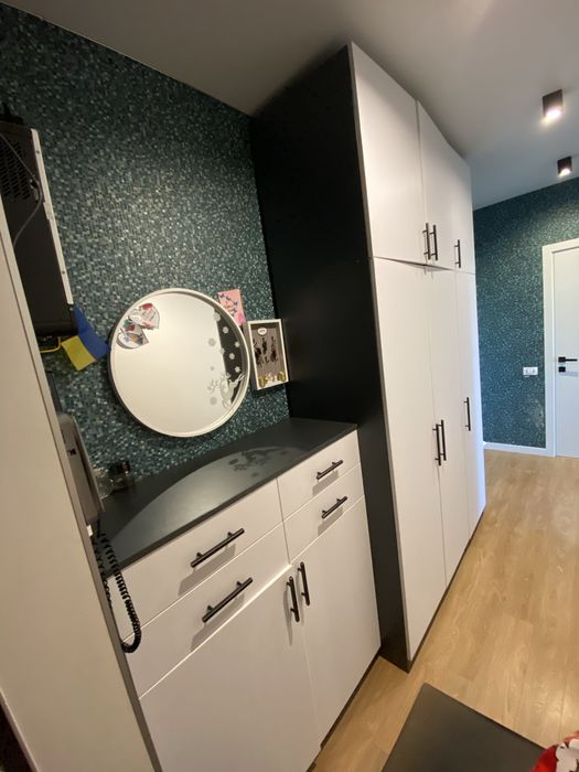 Квартира продається частково з меблями - кухня з побутовою технікою (котел, бойлер та лічильник закриті у кухонні шафи) шафи у вітальні де підключено інвертор, вбудована шафа у меншій кімнаті, та укомплектована всім необхідним ванна кімната.