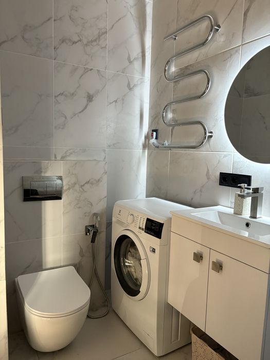 Дуже гарне планування з відокремленою кухнею та вітальнею, також робоче місце, відкрита гардеробна у спальні з великим двомісним ліжком, багато контурів світла по всій квартирі.