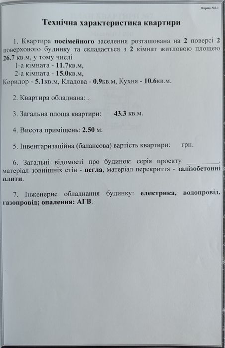 2 х комнатная квартира; Квартира знаходиться в центрі, поряд школа, дитячий садок, магазин, 2хв до головної зупинки селища.