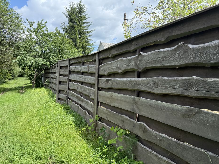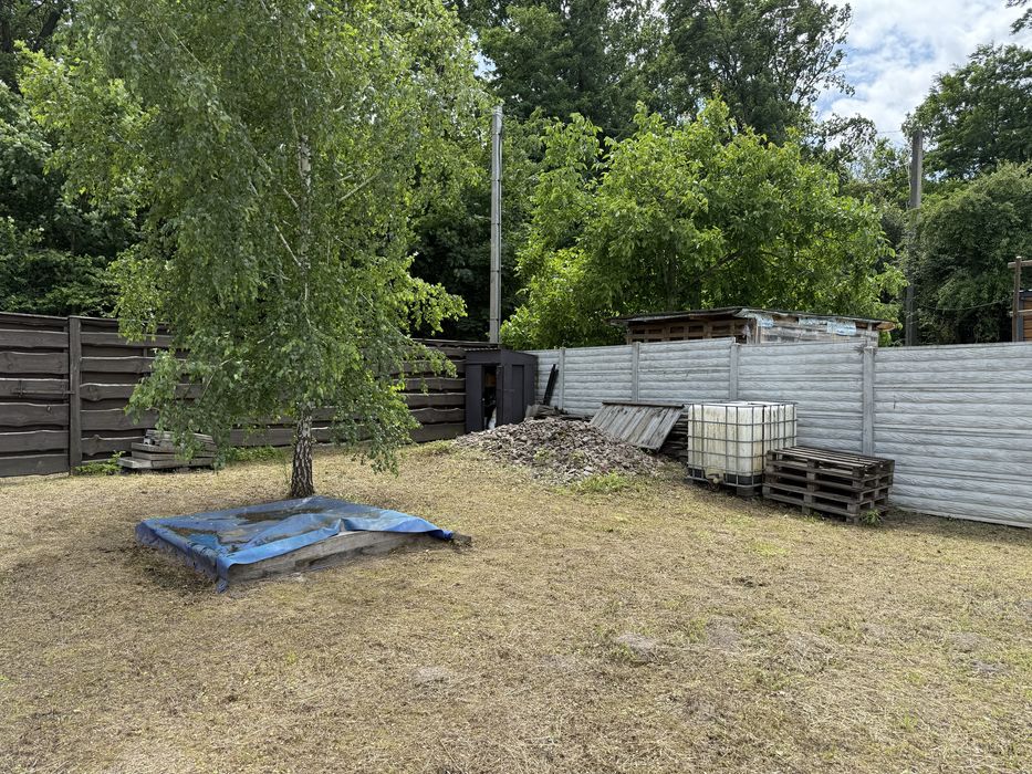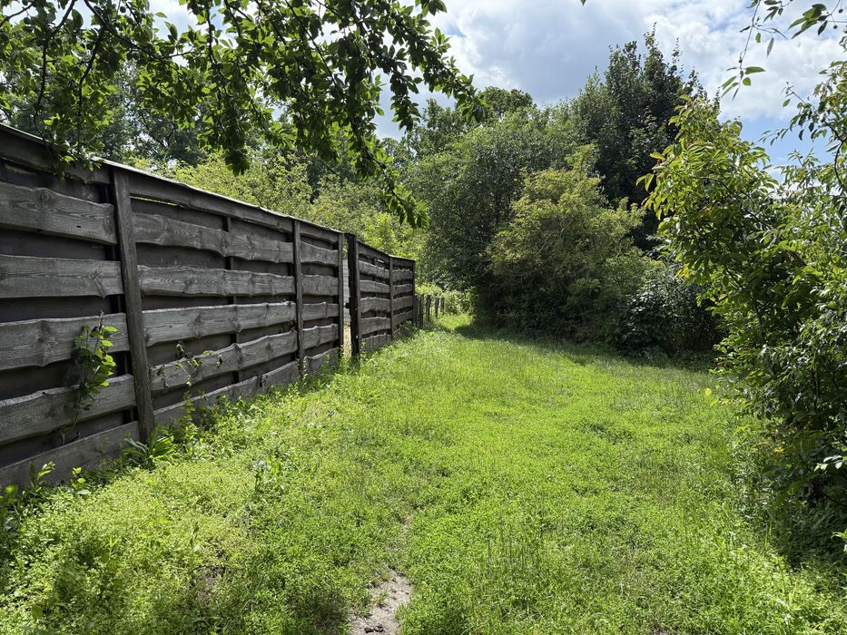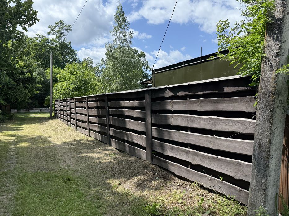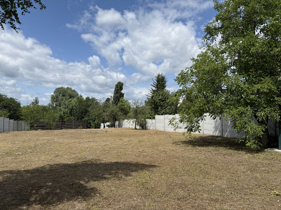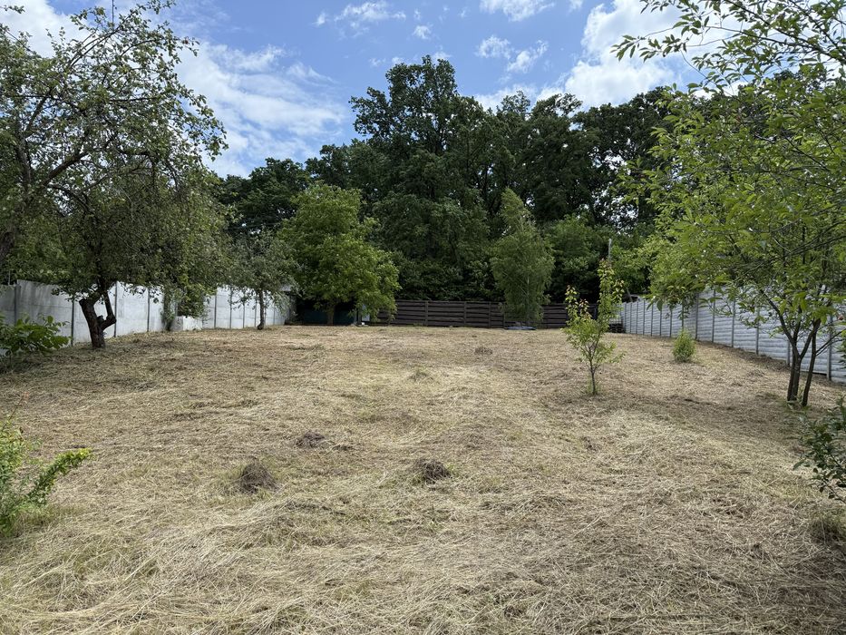 Окремо вагончик для садового інвентаря. Світло проведено. Присутні фруктові дерева. Ділянка огороджена бетонним забором 2м., фасадні з дерева 2м.