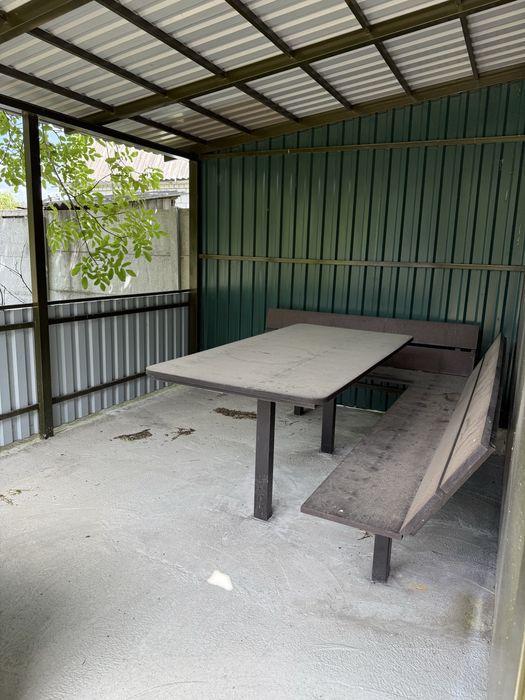 На ділянці маю побутовий металевий, утеплений садовий вагончик. Відкрита металева альтанка з лавками та столом.