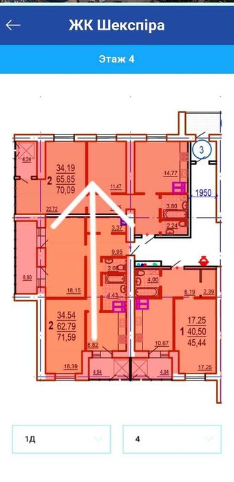 Квартира находится в строительном состоянии, 4/16, секция 1Д. Общая площадь 70 кв.м. (планировка на фото 2)