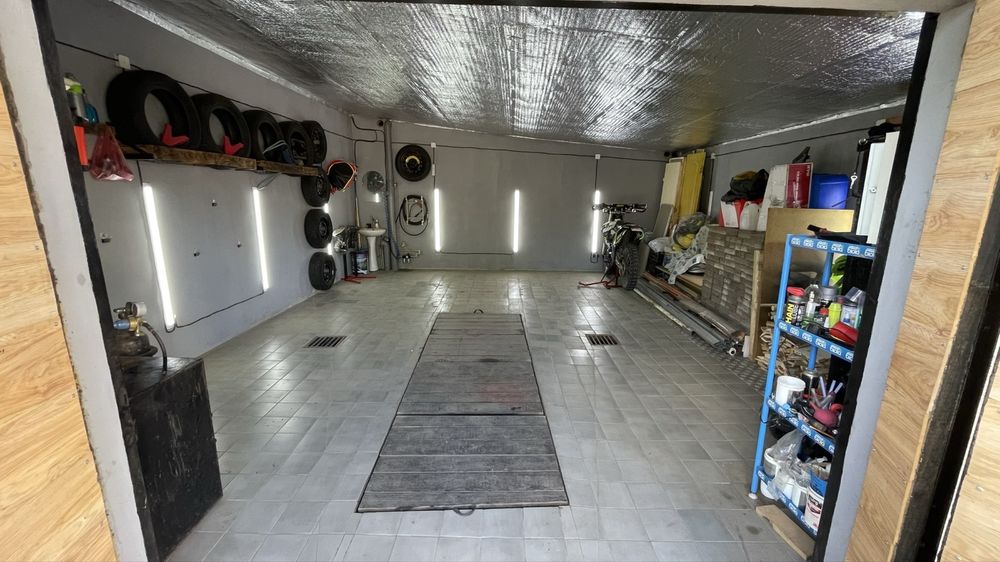2)гараж 40м2 прям біля будинку знаходиться, земля приватизована, є всі документи, збудований 4 роки назад, гараж з ремонтом, утеплена криша і ворота, є опалення(дрова+електро), на підлозі плитка, стіни покрашені, якісне освітлення, є столи, сейфи, в гаражі велика яма і погріб з освітлення, все в плитці також!