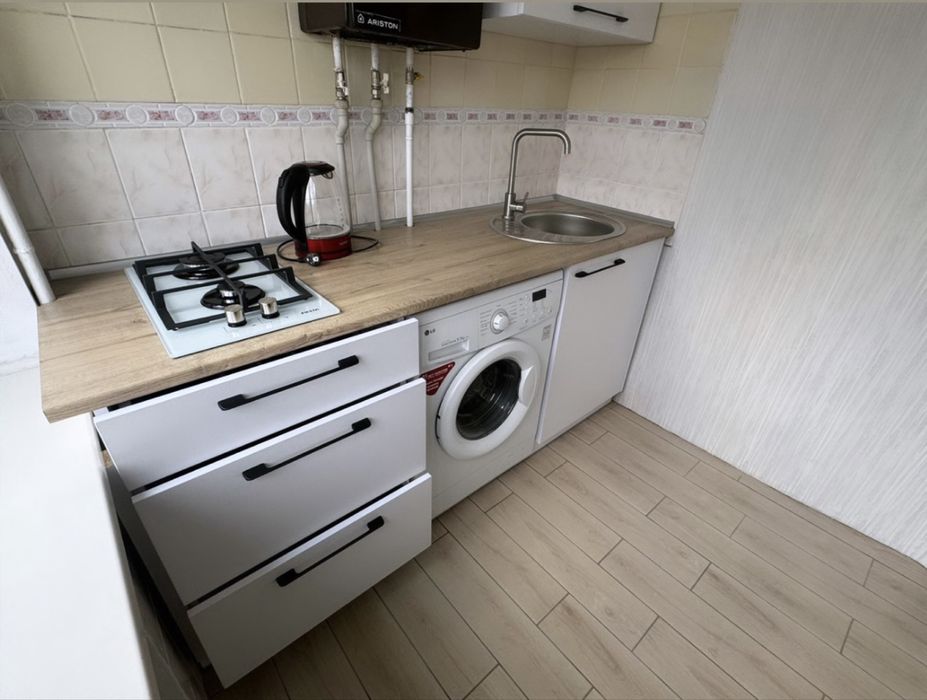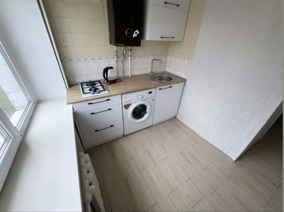 Залишається шафа, кухня, пральна машина, стільці на кухні, кондиціонер.