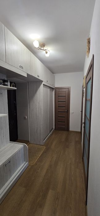 Великий коридор із шафами-купе та антресолями до стелі для зберігання усього необхідного.