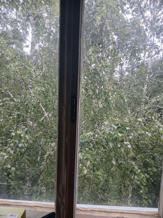 Окна одной комнаты выходят на центральную улицу (перед окнами растут берёзы, которые защищают от шума и пыли), окна кухни и второй комнаты выходят во двор с видом на лесную зону и водоём.