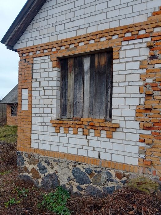 По будинку є тріщини на двох паралельних стінах, так як рік побудови 1995-2000р і досі не має вимощення біля будинку і відсутні ринви. Стан по фото або можете оглянути на місці.