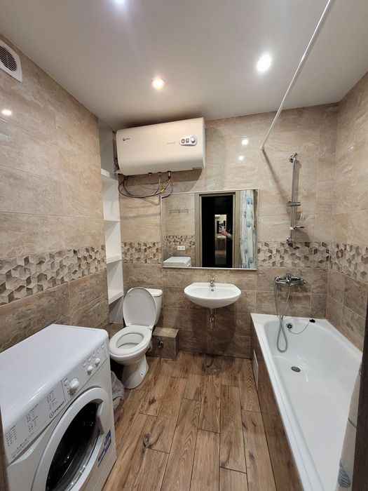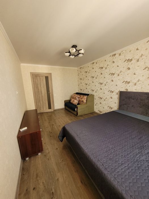 Квартира знаходиться на 17поверсі, в новому монолітно- каркасному будинку,є консьєрж . В квартирі є все необхідне для комфортного проживання: холодильник, варильна поверхня, духова шафа, мікрохвильовка, бойлер, кондиціонер, підключений інтернет. В кімнаті є двоспальне ліжко з ортопедичним матрасом та розкладний диван. Є компактна гардеробна кімната. Лоджія застіклена з чудовим видом на озеро. Поруч супермаркети, школа, садочок, до метро 15 хв. ходьби.