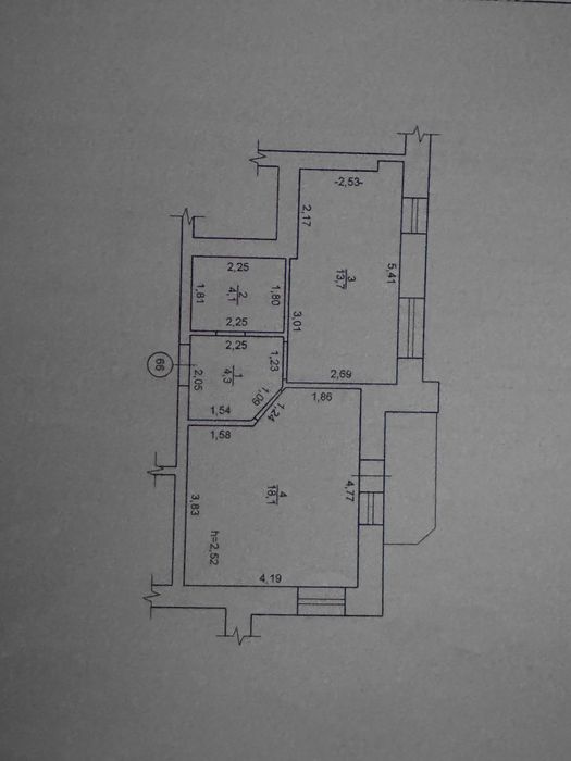 41.4 кв.м. житлова площа 18.1 кв.м., кухня 13.7кв.м, суміжні туалет з ванною 4.1 кв.м. коридор 4.3 кв.м.