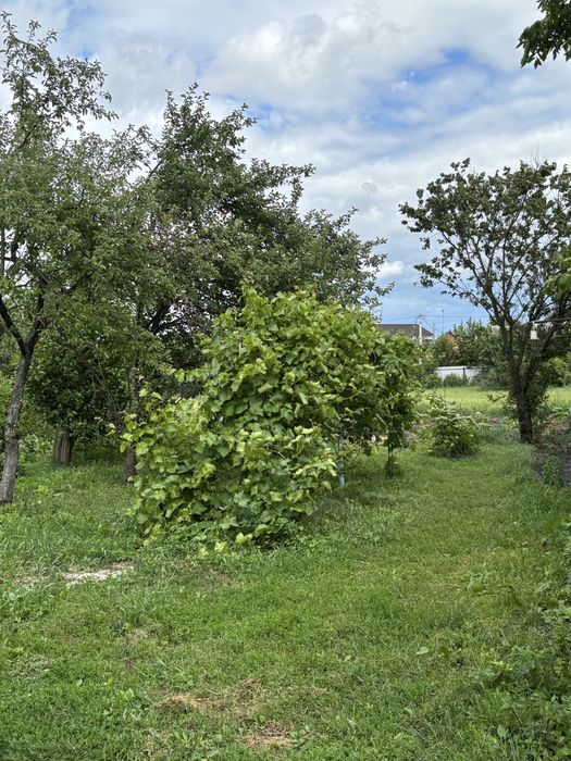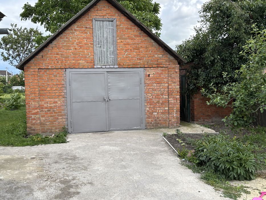 На ділянці: гараж з цегли, сарай, удобрений город, сад з фруктовими деревами та горіхами, квітучі клумби.