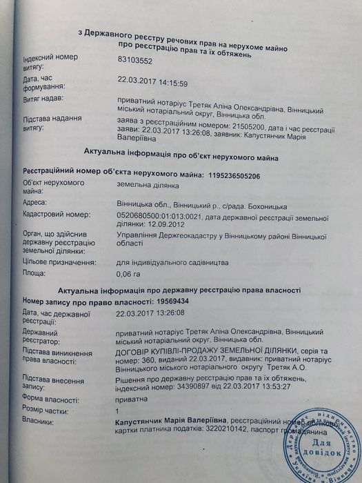 продам землю Вінницька область Вінницький район село Бохоники