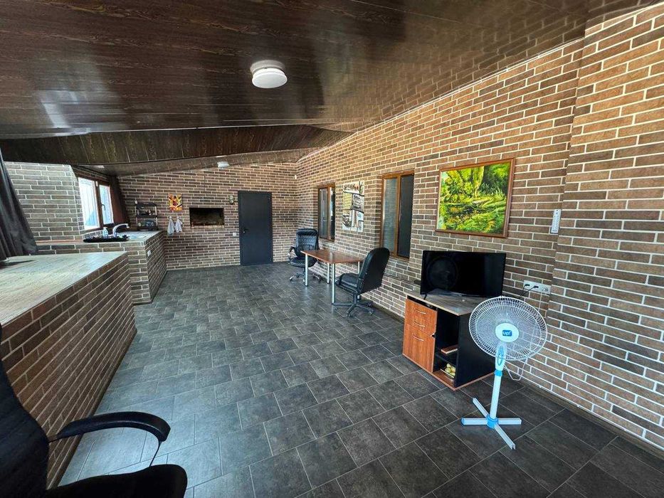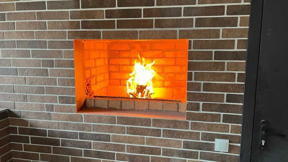 Расположен на веранде, выполнен из огнеупорного кирпича. Продуманная вытяжка — никакого дыма и запаха даже при закрытых окнах.
