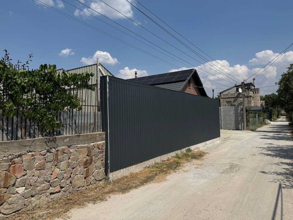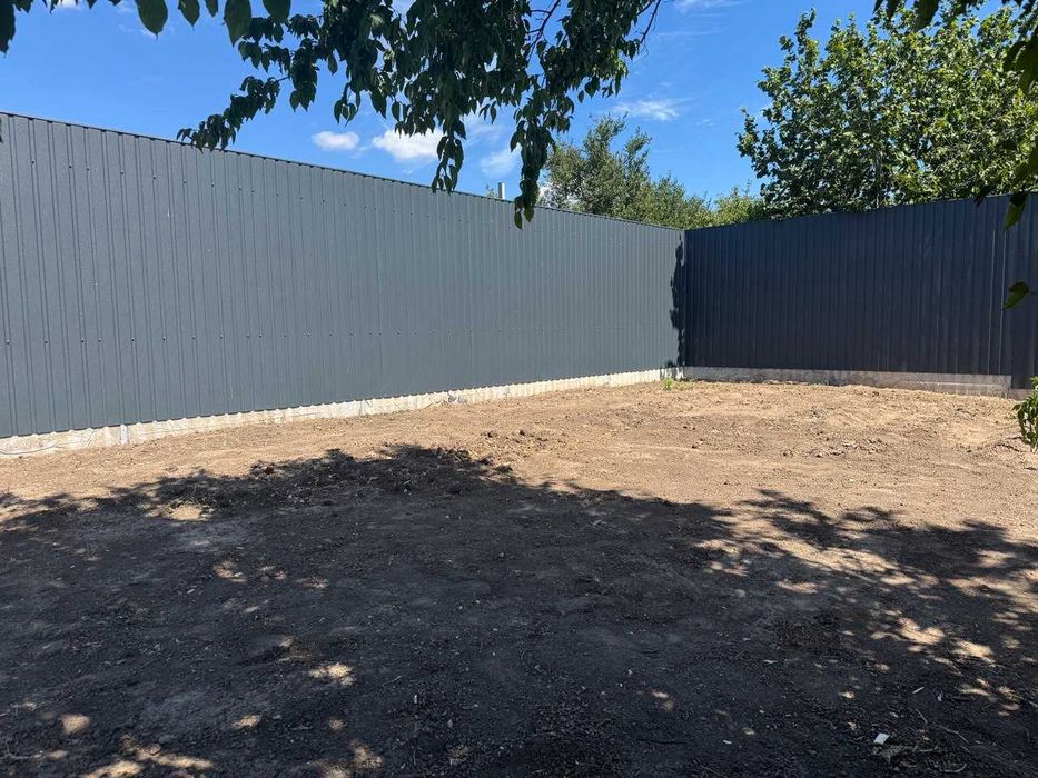 Забор по периметру высотой 2,2 м, установлен на ленточный фундамент.