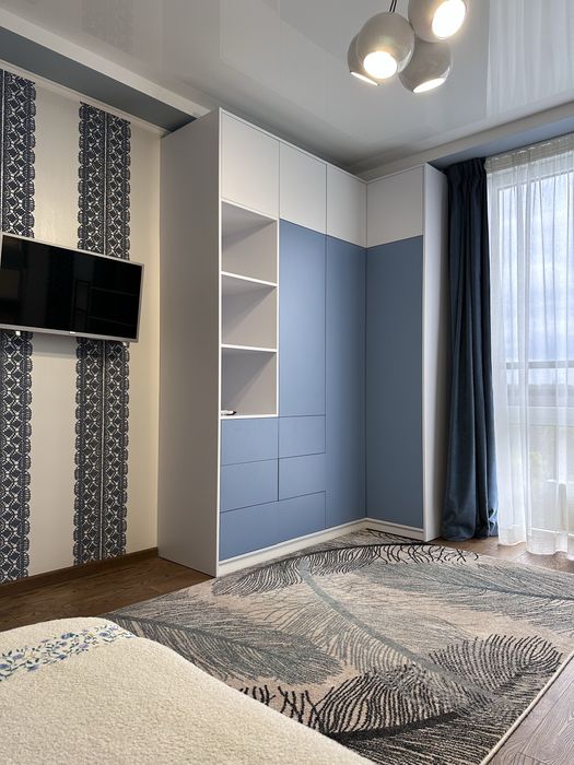 Квартира укомплектована всіма сучасними меблями та технікою ( холодильник, пральна машина автомат, ел. варильна панель, духова шафа, витяжка, бойлер, система зворотного осмосу води).