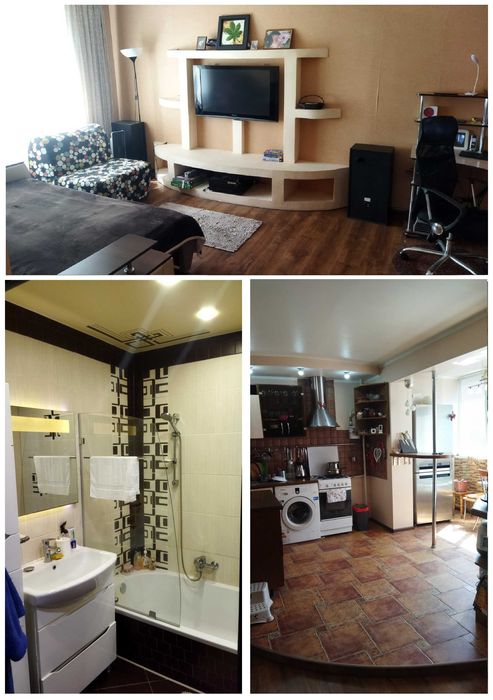 Продаж 1 кімнатної квартири-студії на Огнівці з гарним ремонтом; Продаж 1 кімнатної квартири-студії на Огнівці з гарним ремонтом, 9 поверх (10 поверховий будинок), панельний дім, велика кухня-студія сумісна з кімнатою та лоджею, квартира утеплена з усіх боків, є кондиціонер, бойлер, два ТВ, стиральна машина, новий великий холодильник, відеонагляд, інтернет, броньовані двері, встановлений тепловий лічильник, лічильники води та двотарифний електроенергії. Загальна площа квартири 43 кв.м. Вмебльована, з технікою, повністю готова для життя + приємний бонус для нового власника. Продаж від власника, не АН.
