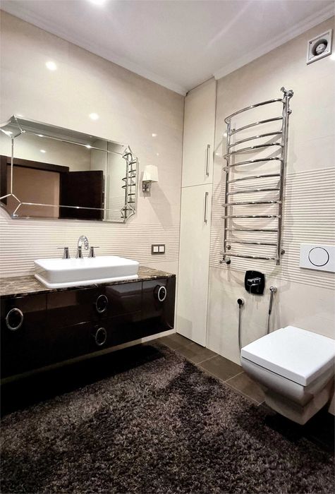 В квартирі є все необхідне, . Тепла підлога в кухні та двох санвузлах. 2 санвузли з душовою та ванною з джакузі.
