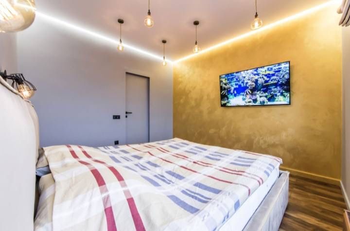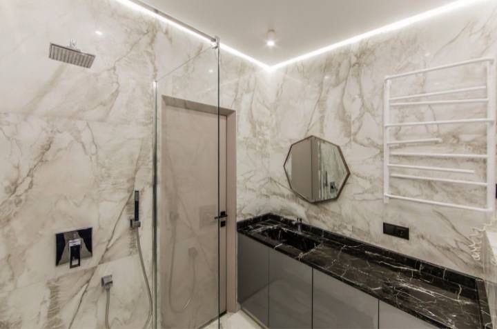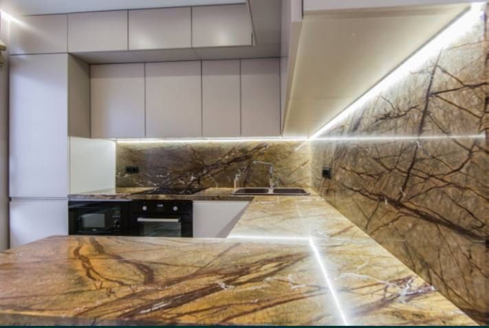 Квартира полностью оборудована бытовой техникой: холодильник, варочная поверхность, духовой шкаф, микроволновая печь, стиральная машина, бойлер, 3 smart телевизора (75", 55",42"), система кондиционирования и т.д Вся мебель, мраморные подоконники и столешница делались исключительно под заказ.