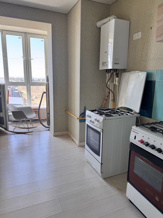 Була зібрана нова кухня, та новий ламінат в кімнаті.