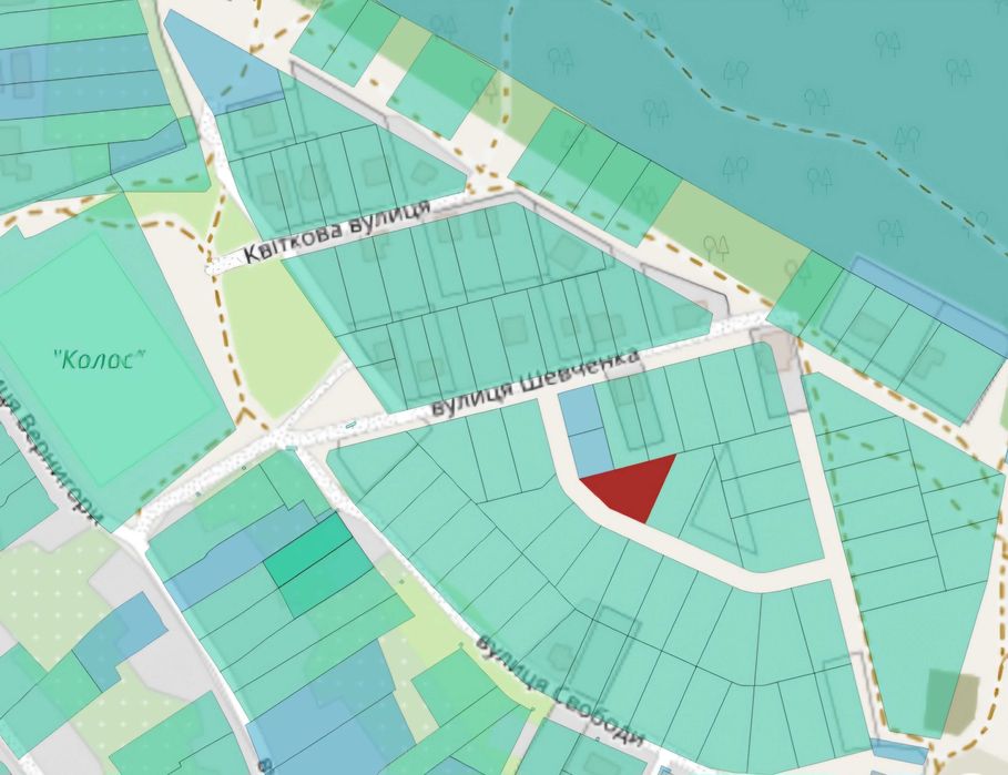 приватизована, повністю вирівняна для подальшого будівництва, широкий фасад . Цільове