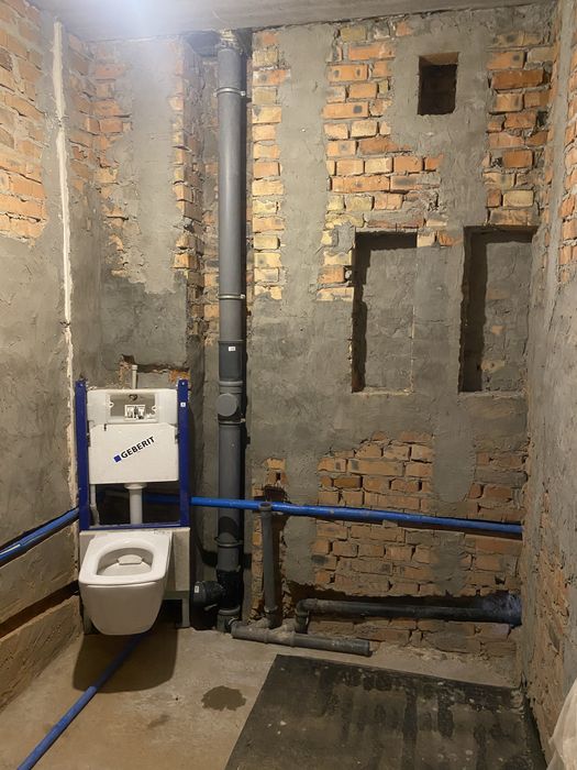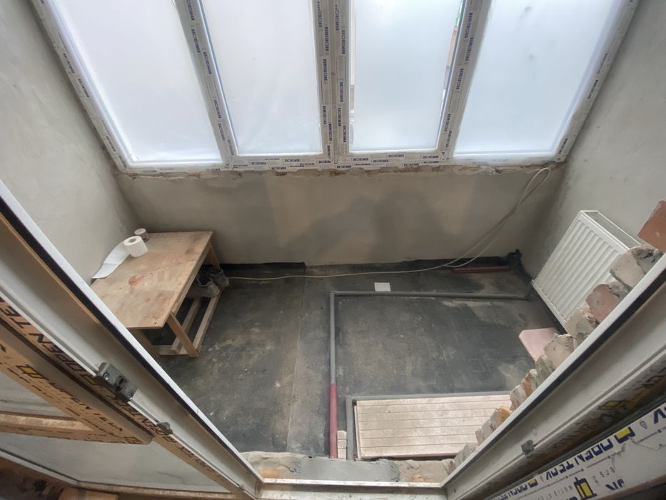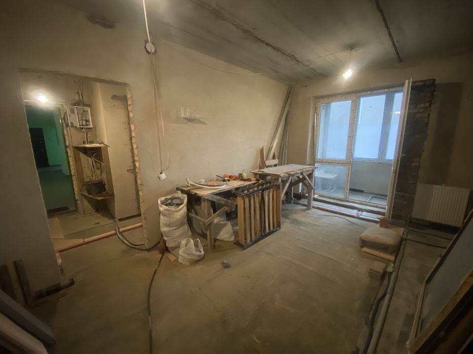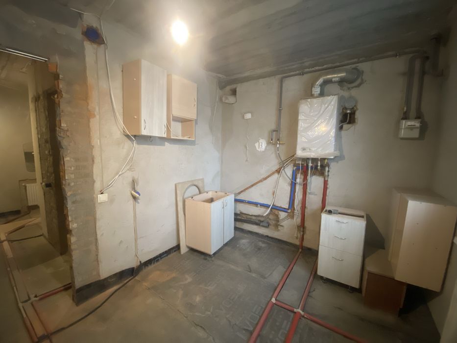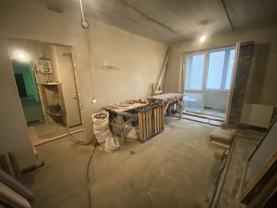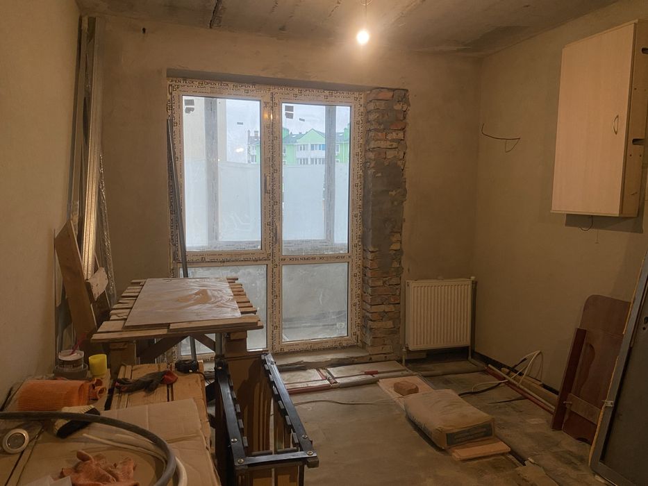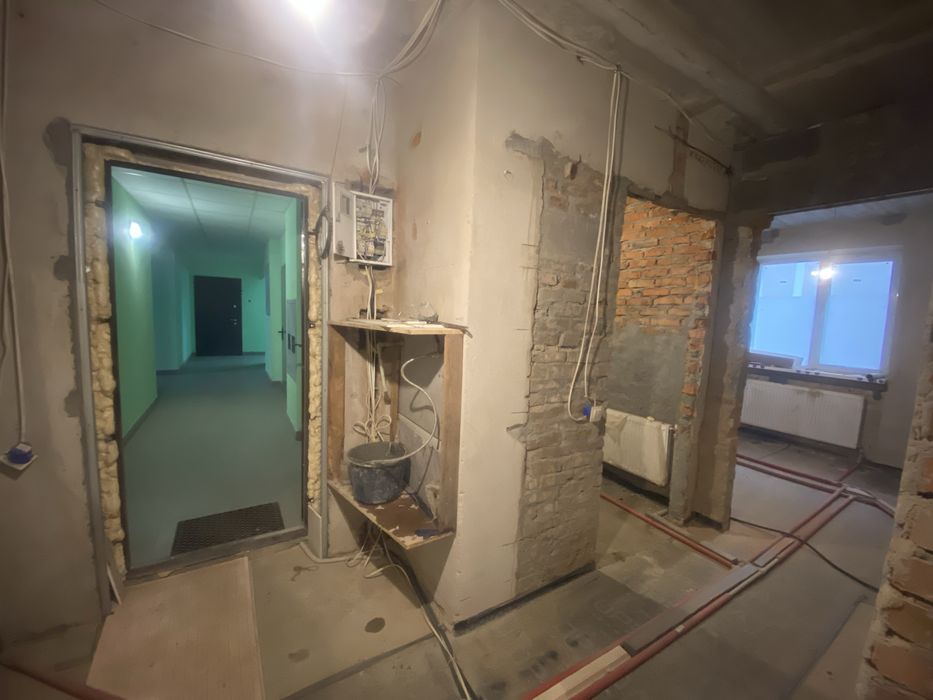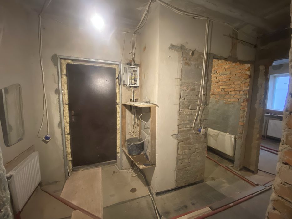 В квартирі виконана радіаторна розводка опалення і гідроізоляція підлоги тобто готова для заливки стяжки або переобладнання під теплу підлогу.