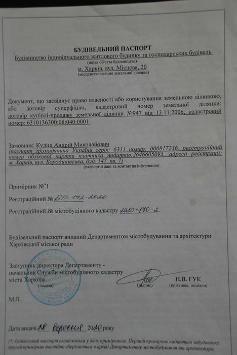 | Земельна ділянка: |