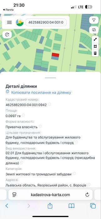 | Земельна ділянка: |