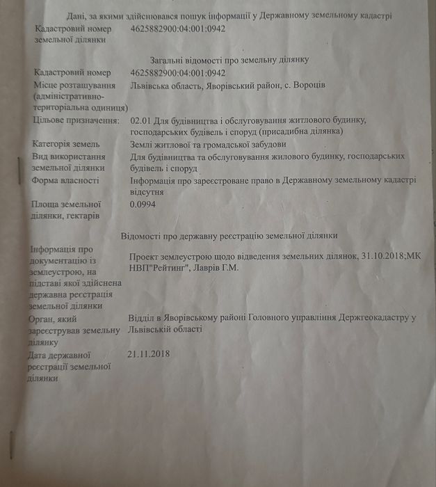 Земельна ділянка; Продається земельна ділянка у с. Вороців (біля Львова)