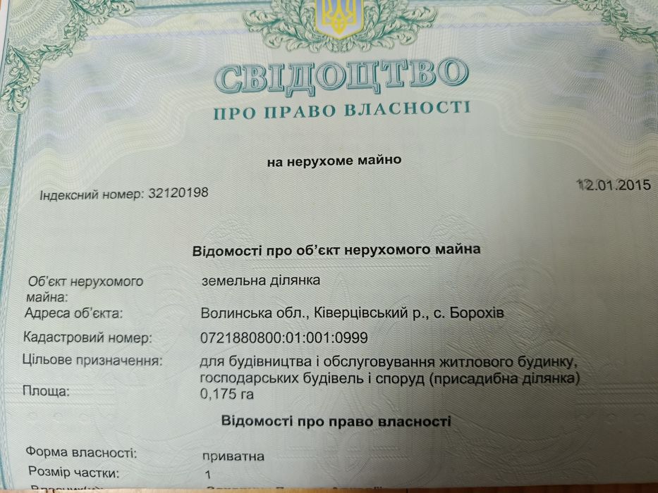 продам землю Волинська область Ківерцівський район село Борохів